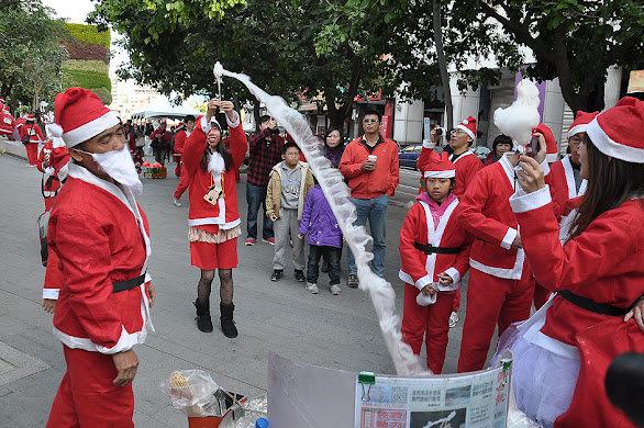注意 !! 聖誕老人出沒 !! 上週六在台中的市民廣場與勤美誠品綠園道這一帶,居然出現了將近3000位聖誕老公公,難道是台中鄉民今年許的聖誕願望特別多,所以要動用這麼多 Santa Claus 提前出來送禮物嗎 ^^? 其實這是由勤美璞真文化藝術基金會發起的2011 Santa GO 草悟道聖誕趣味路跑活動,報名就可獲得全套聖誕服,跑完有精緻的獎狀、獎牌,還能抽大獎,而最重要的,是這次路跑報名收入所得,將會全數捐予惠明學校,這麼有愛心又充滿趣味的活動,可惜想報名時已經額滿了,不過活動當天剛好有在附近,既然是全台首次聖誕路跑,當然要來拍拍照囉 !!